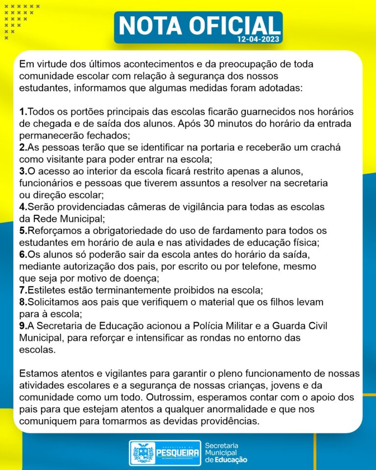 Ataque em escolas: medidas de prevenção são tomadas em Pesqueira