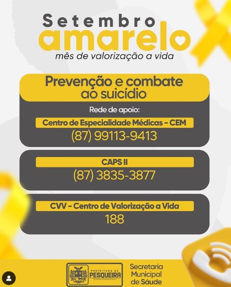 A prevenção ao suicídio é uma responsabilidade de todos nós. Se você ou alguém que você conhece precisa de ajuda, saiba que não está sozinho. Ligue para a nossa rede de apoio: