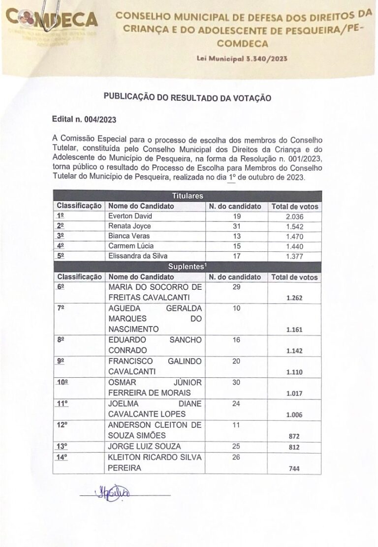 Neste domingo (1º de outubro), assim como em todo o país, em Pesqueira, no Agreste de Pernambuco foi realizado as eleições para escolher os novos conselheiros tutelares, que são responsáveis pela proteção dos direitos de Crianças e Adolescentes.