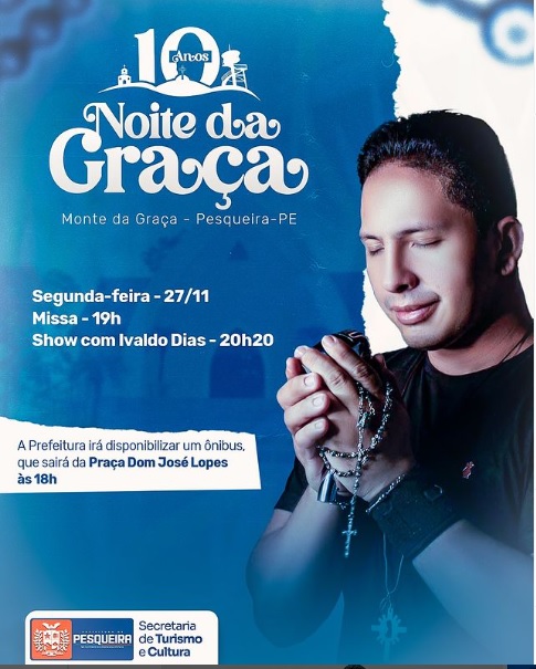 Missa às 19h, e show de Ivaldo Dias após a missa.