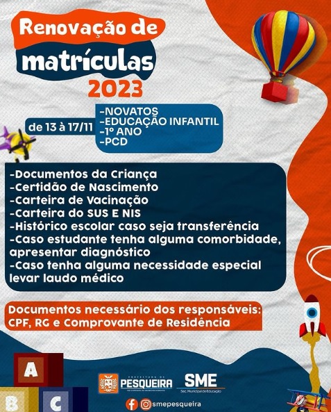 Para maiores informações, procure a Secretaria de Educação de Pesqueira.