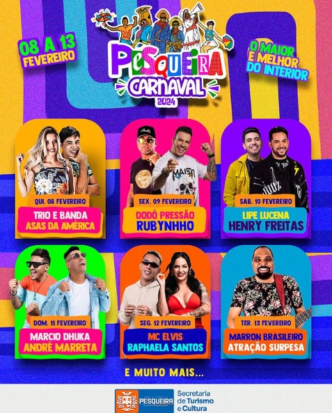 Carnaval 2024: Confira algumas atrações confirmadas para a folia 2024, em Pesqueira