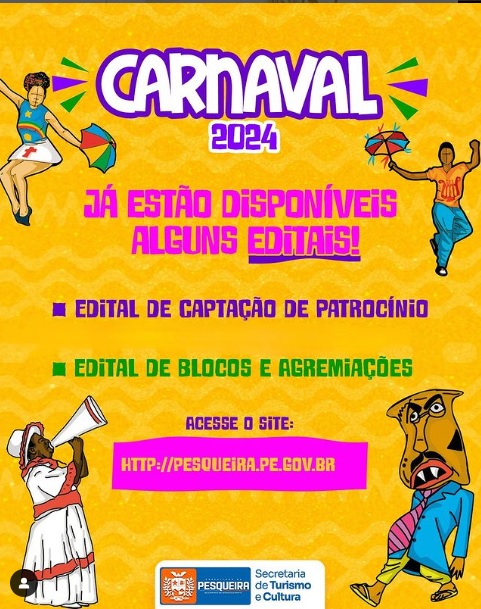 – Edital de Captação de Patrocínio; – Edital de blocos e agremiações.