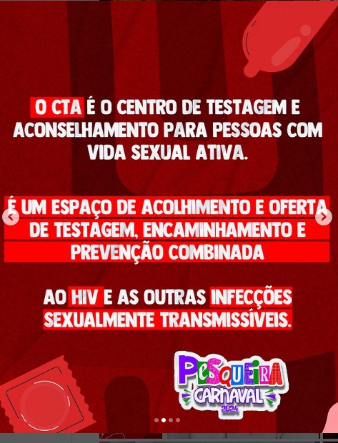 Teremos um ponto de atendimento na folia, com orientações sobre IST’s e distribuição de preservativos.