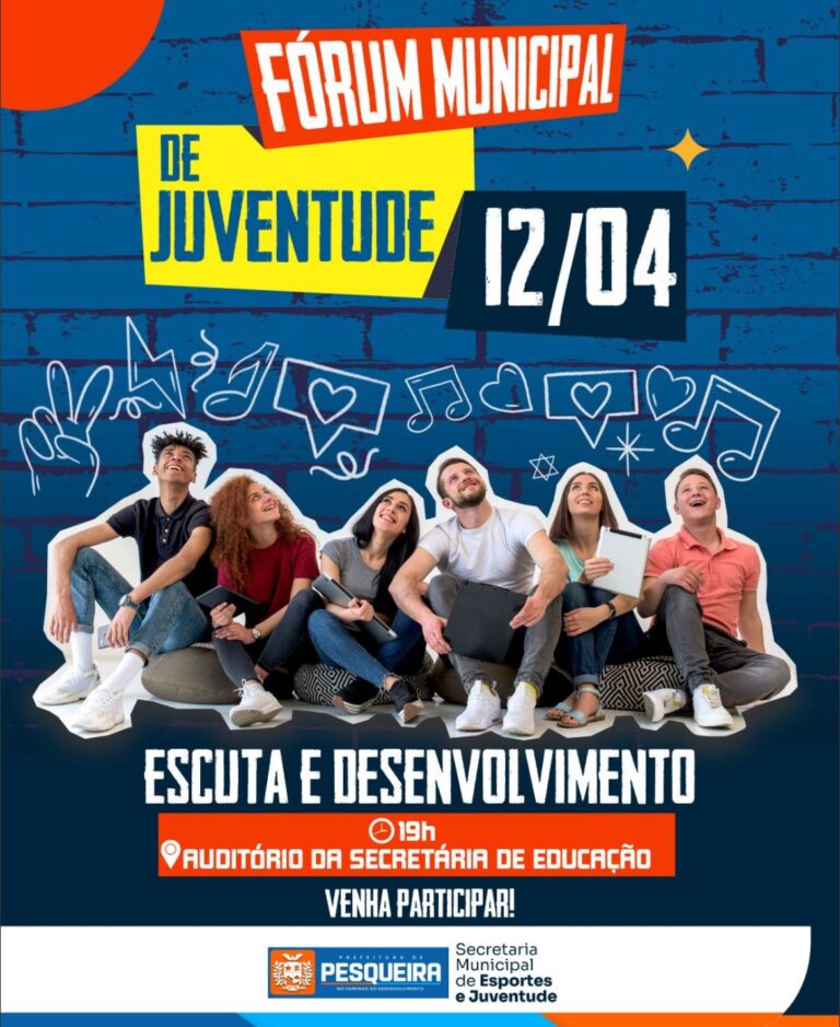 A Prefeitura Municipal de Pesqueira, através da Secretária de Esportes e Juventude, irá promover o 1º Fórum Municipal de Juventude da cidade de Pesqueira. Escuta e desenvolvimento, discussões de projetos e atividades serão algumas das pautas do avento.