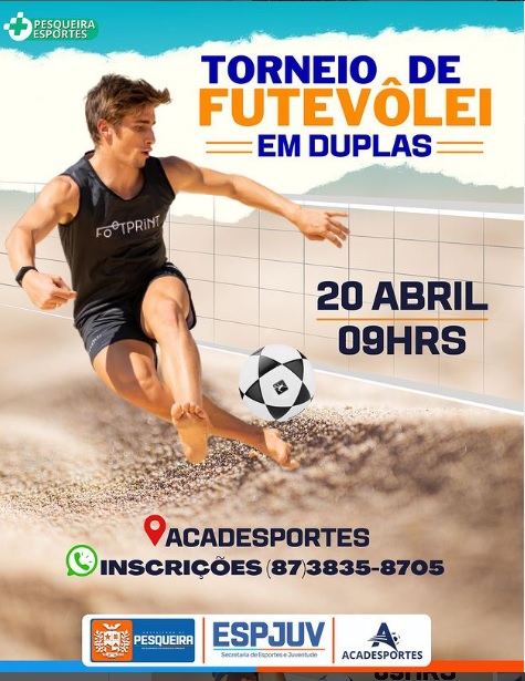 No dia 20 de abril, a Prefeitura Municipal de Pesqueira, através da secretária de Esportes e Juventude irá promover o 2º Torneio de Futevôlei em duplas.