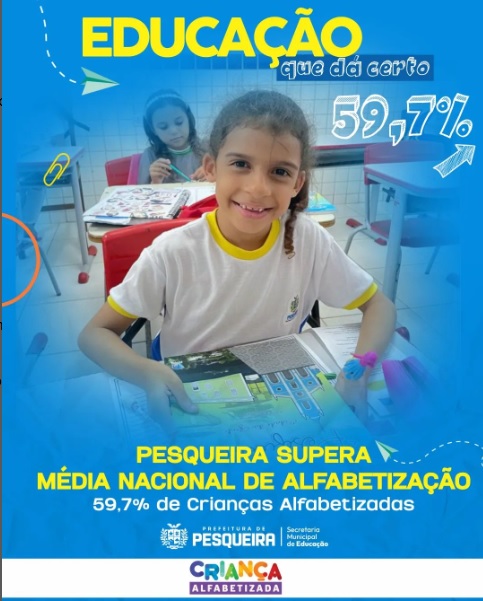 Com 59,7% dos estudantes alfabetizados na idade certa, Pesqueira supera a média estadual e nacional de alfabetização, contribuindo para elevar o resultado do estado de Pernambuco a 59% e também o resultado nacional de 56%.
