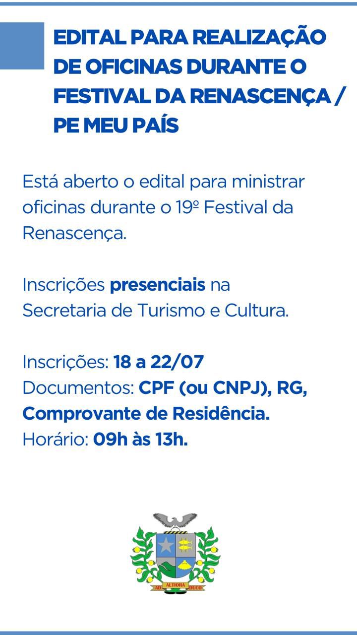 Já está disponível edital para realização de oficinas do ‘Festival PE Meu País’