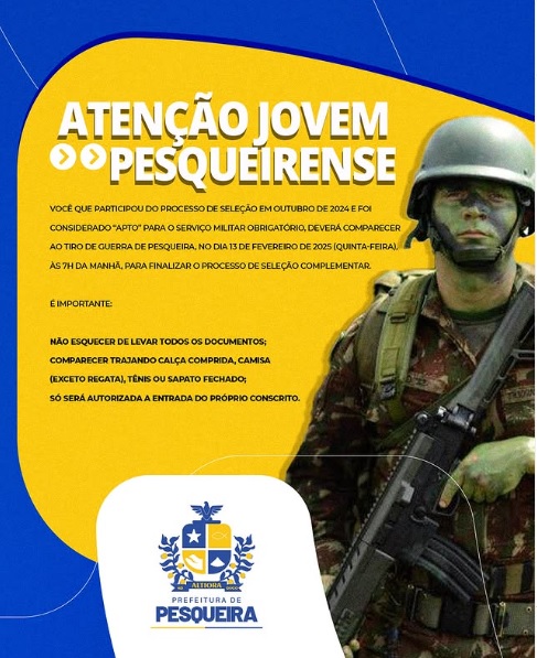 Se você foi considerado “Apto” no Processo de Seleção para o Serviço Militar Obrigatório em outubro de 2024, chegou a hora de dar o próximo passo!