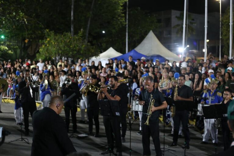 Encerrando o dia de comemorações, o Encontro de Bandas, realizado às 18h30, reuniu energia, música e vibração popular, consolidando o 7 de Setembro como um dos maiores eventos cívicos da cidade.