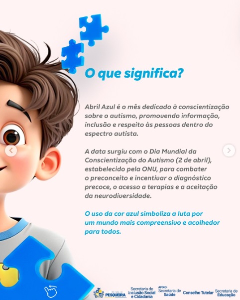 No dia 2 de abril, venha participar de uma ação especial em alusão ao Dia Mundial de Conscientização do Autismo! Um momento importante para ampliar o conhecimento, garantir direitos e fortalecer a inclusão.