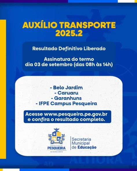 O resultado definitivo do Auxílio Transporte Estudantil 2025.2 já está disponível!