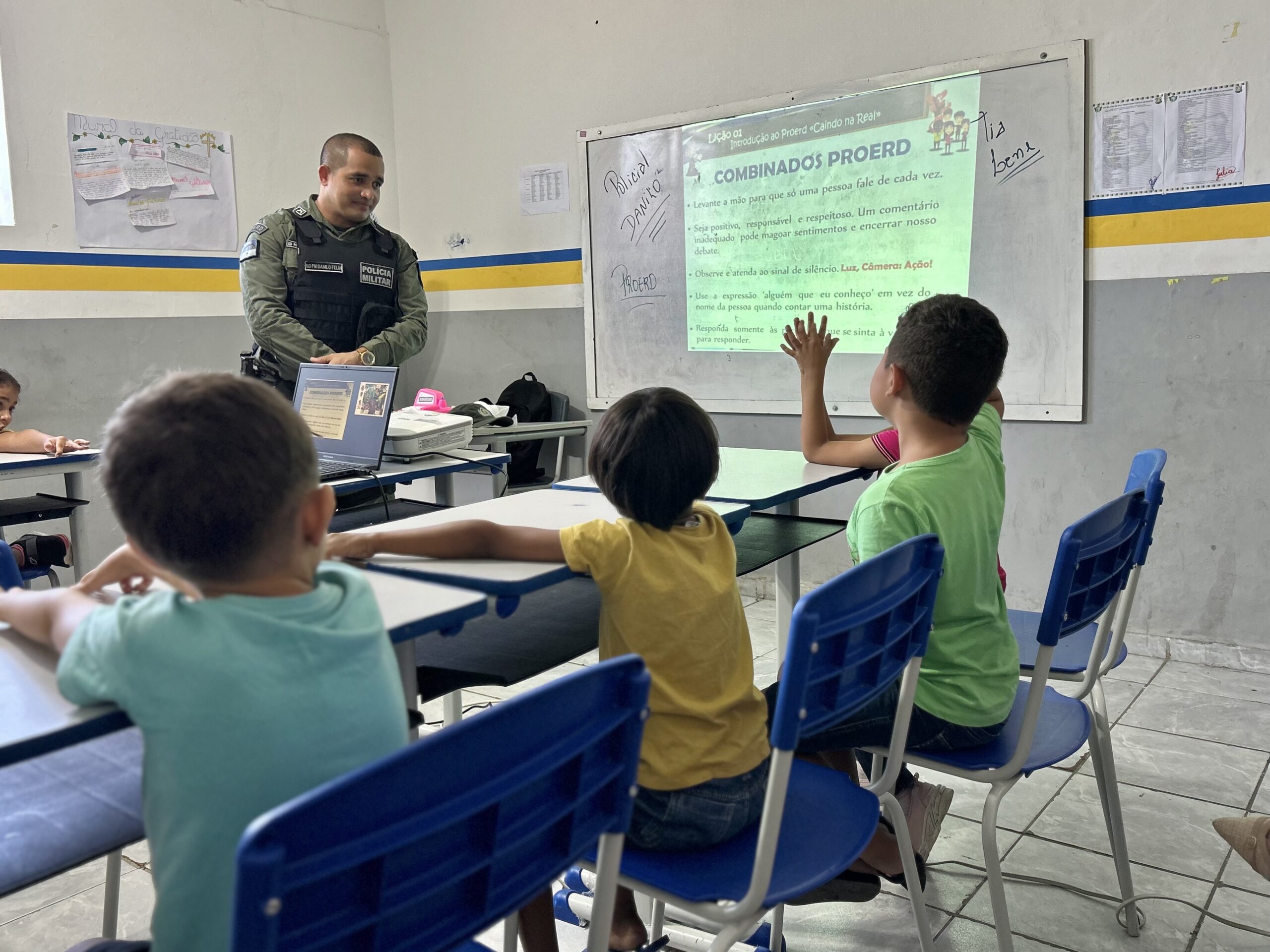 Na manhã desta quarta-feira (07), a Escola Municipal Professor Potiguar Mattos recebeu a aula inaugural do PROERD (Programa Educacional de Resistência às Drogas e à Violência), com a participação especial da turma do primeiro ano. A iniciativa, que une educação e prevenção, é uma ação estratégica para orientar crianças e adolescentes sobre os riscos do uso de drogas e da prática de violência.