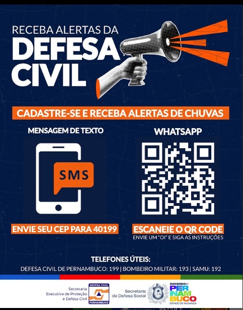 199 – Defesa Civil | 193 – Bombeiros | 192 – SAMU.