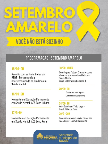 📅 Confira nossa agenda do Setembro Amarelo e participe!
