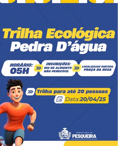 No dia 20/04/25, participe da Trilha Ecológica Pedra D’água, com saída às 05h da manhã na Praça da Rosa.