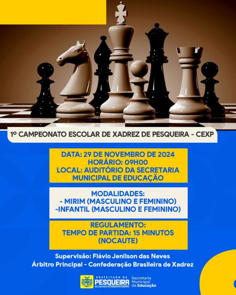 No dia 29 de novembro, nosso auditório se transforma em palco para jovens enxadristas das categorias Mirim e Infantil (masculino e feminino), em uma disputa de estratégia e concentração. Com a supervisão do árbitro Flávio Jenilson das Neves, da Confederação Brasileira de Xadrez, este evento promete inspirar nossos estudantes.